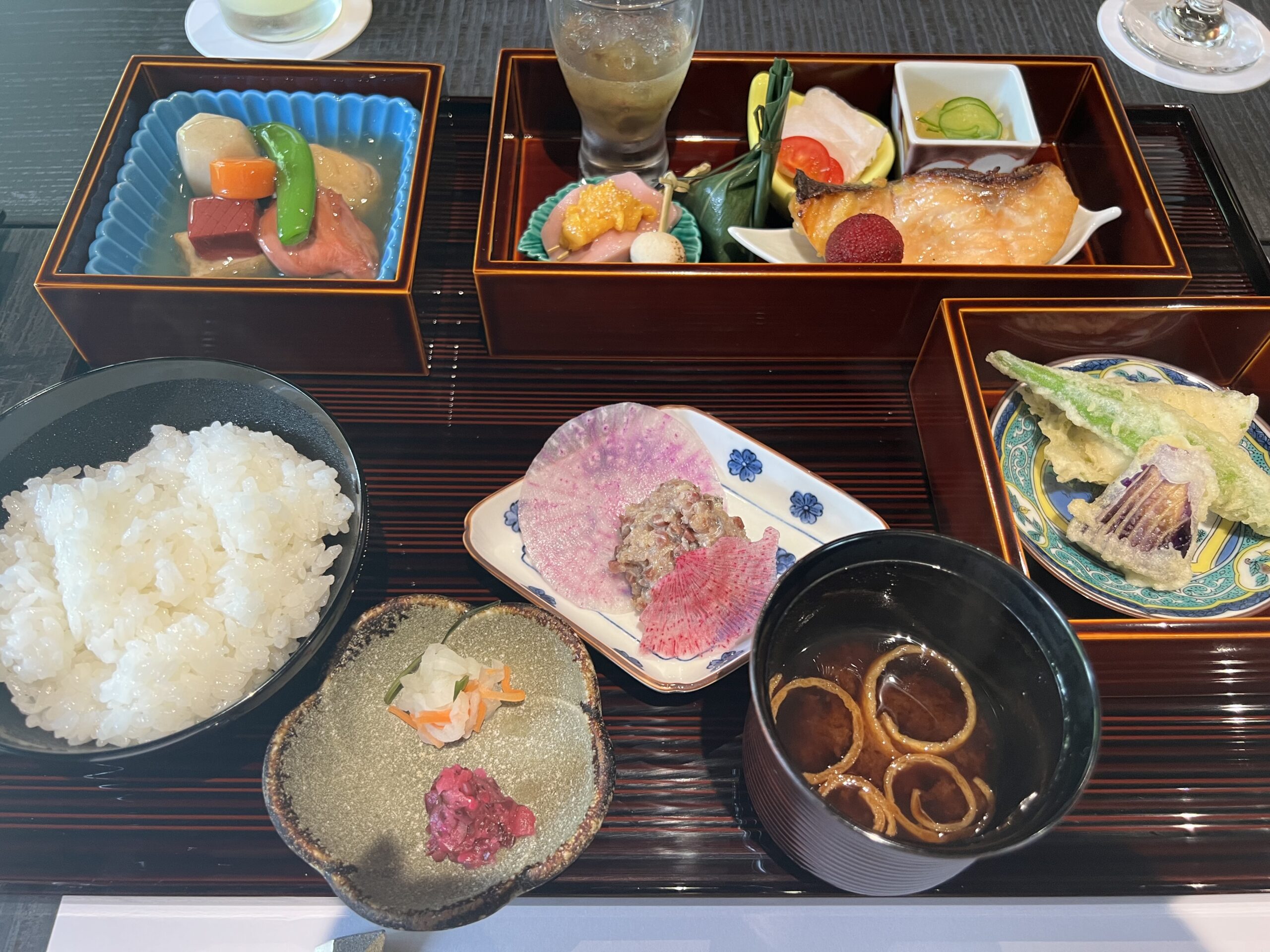 12:30 飯沼本家きのえねomoyaでランチ 春慶箱盛り膳(3,300円)(1時間)
