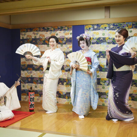 Enjoy a traditional Japanese dinner at an authentic ryotei while experiencing Ozashiki culture. Guests will watch geisha perform songs, dances, and shamisen music, and also take part in traditional Ozashiki games, creating a truly memorable and immersive cultural experience.