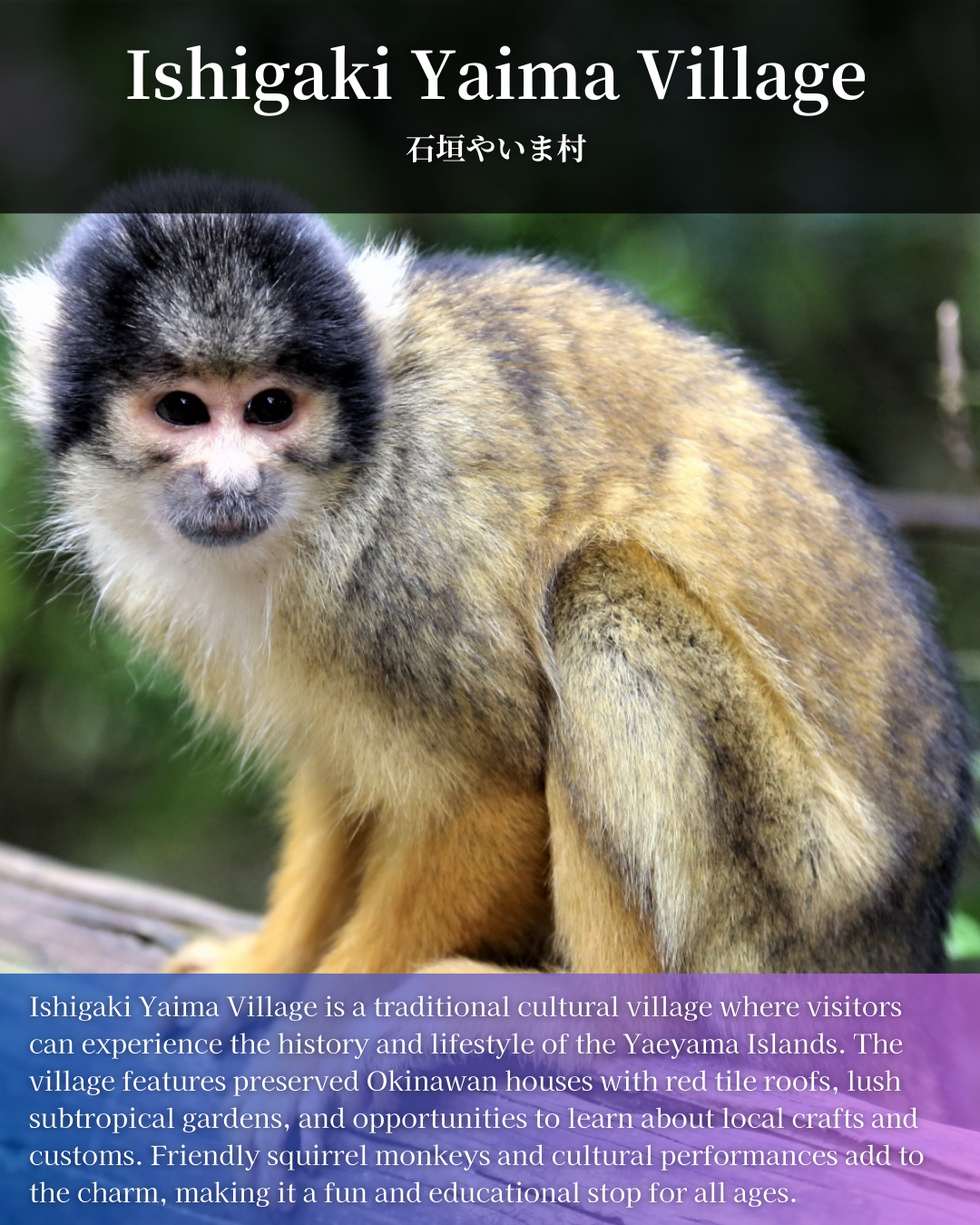 Next, step into traditional island life at Ishigaki Yaima Village, where preserved houses, local culture, and tropical surroundings showcase the island’s heritage.