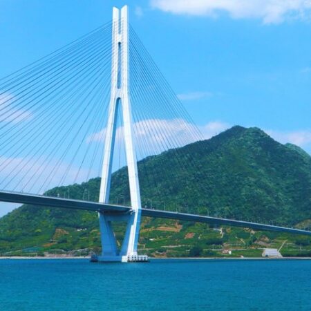 Cycle along the Shimanami Kaido, one of Japan’s most breathtaking coastal routes, starting from the historic port town of Onomichi. This scenic journey takes you across island bridges floating above the calm blue waters of the Seto Inland Sea, offering unforgettable ocean views and a relaxed cycling experience.
